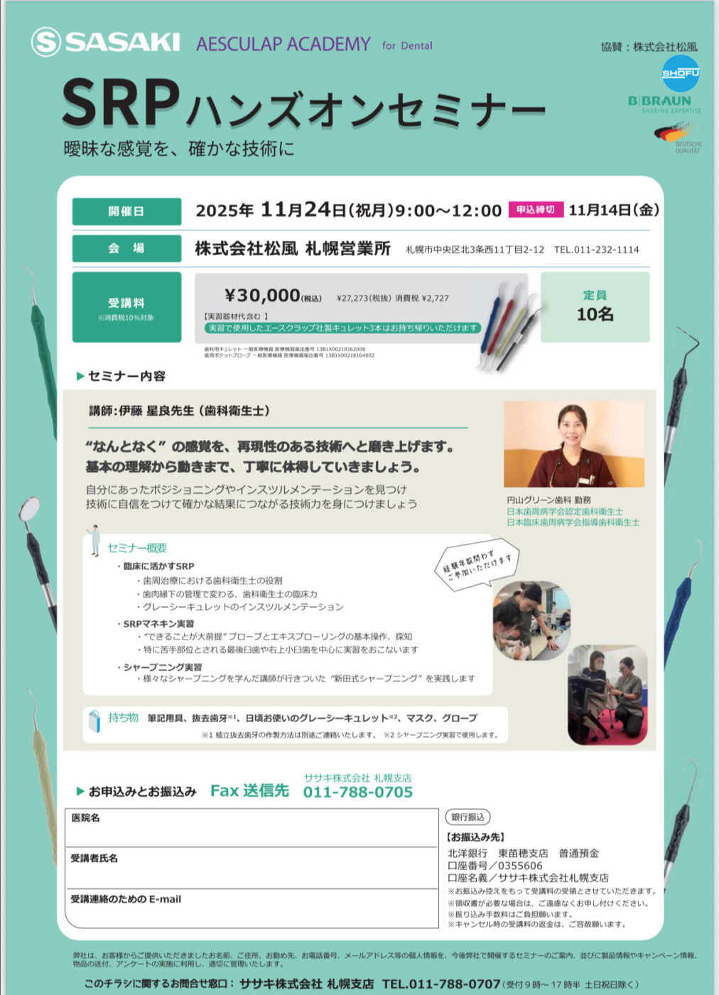 このセミナーでは、歯周基本治療におけるスケーリング・ルートプレーニング(SRP)の技術を
